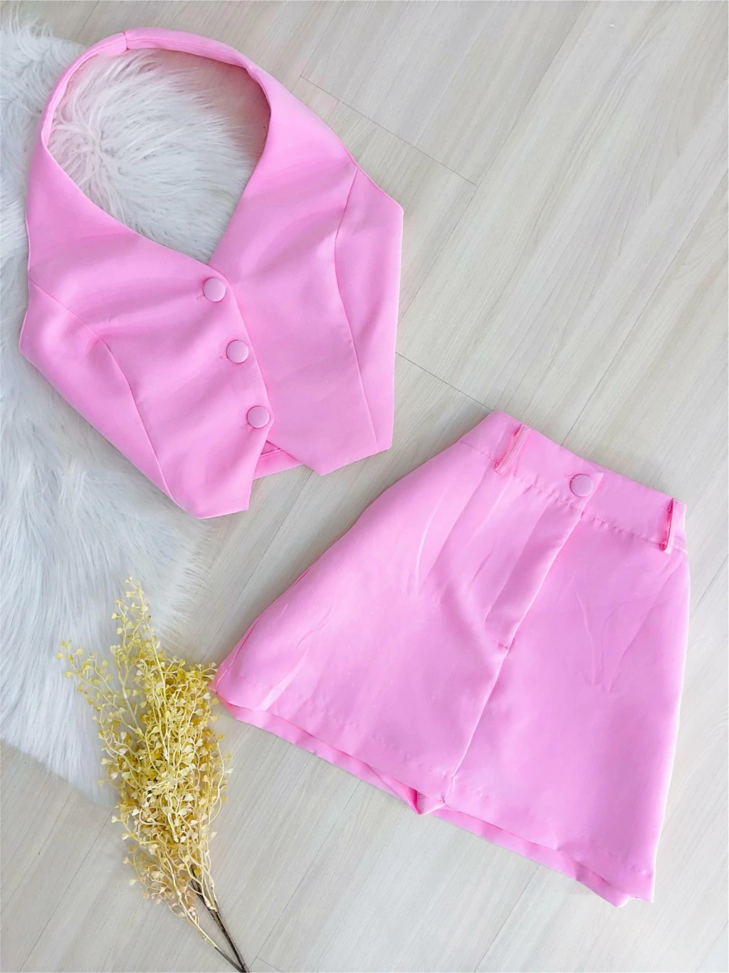 Medidas Shorts Saia P: cintura 68 cm, quadril 88 cm, comprimento 40 cm.