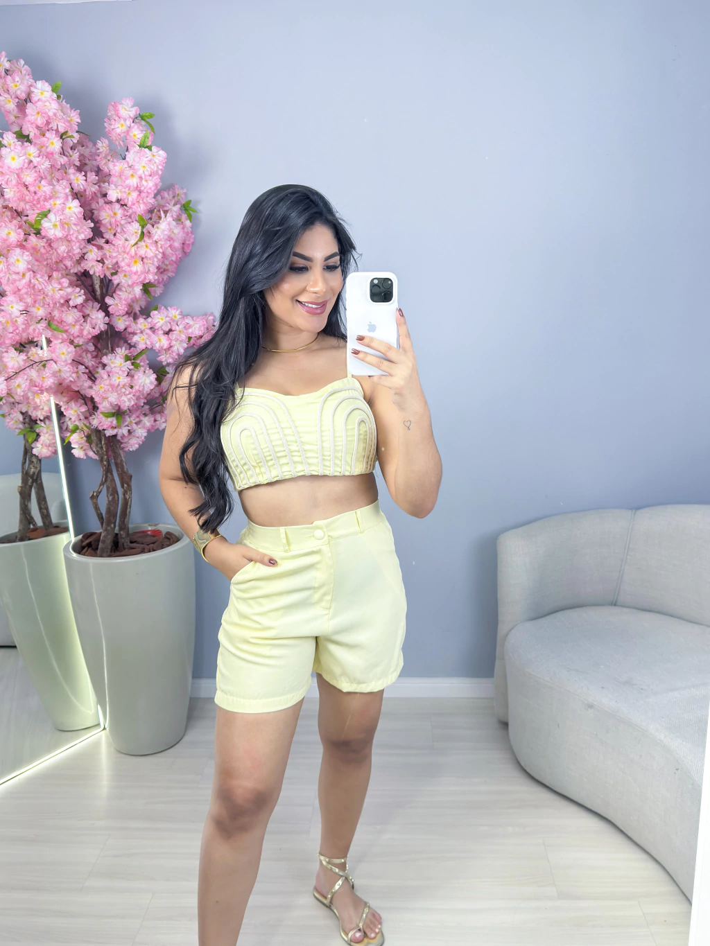 Descubra a combinação perfeita entre estilo e praticidade com o Conjunto Paloma, composto por cropped e shorts confeccionados em tecido linho, garantindo frescor e elegância para qualquer ocasião.