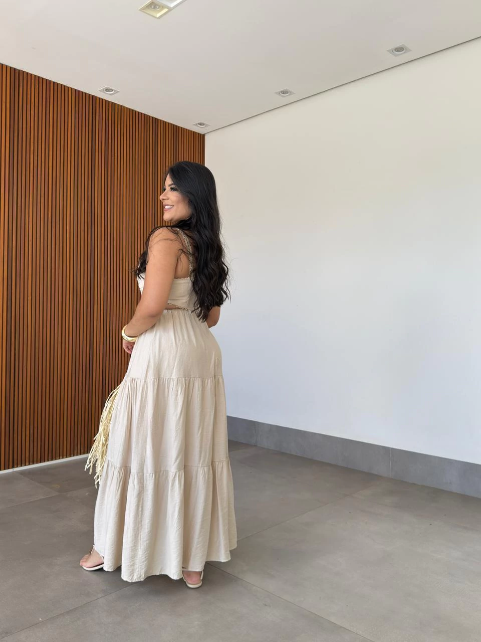 Descubra o Vestido Longo com Bordado e Recortes, uma peça que une elegância e delicadeza para ocasiões especiais. Confeccionado em tecido leve, proporciona caimento fluido e conforto durante todo o dia. Os bordados detalhados e recortes estratégicos valorizam a silhueta com muito estilo e sofisticação.