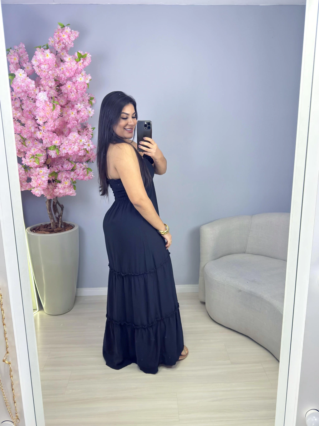 Medidas tamanho único: Busto 64 cm, cintura 78 cm, quadril 98 cm e comprimento 126 cm.
